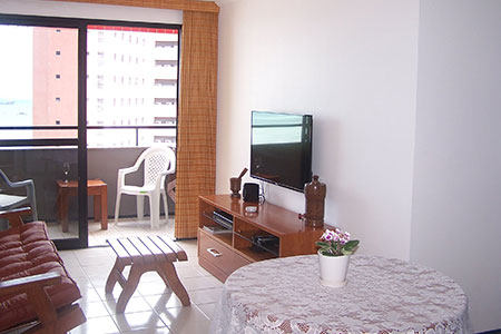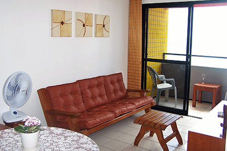 Apartment 1101 in Ed.Caravelle is a decent apartment on the 11th floor with hardwood interior, located 30 m (appr. 33 ft) from the sea. Due to its high altitude and close proximity to the beach, you will have an amazing view of the ocean.On your right you will be able to see the harbor and on your left you can look out over the coastline on to Combucu.The fish market is within stone’s throw, so there will be no shortage of fresh seafood.The bus to Praya de Fututo and the city centre stops right outside your door.The minimum rental period is 1 week. For a shorter stay or monthly rental (min. of 2 months), please use our contact sheet.